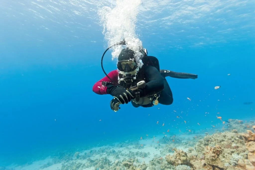 Convex mirror design makes no annoying rotation quickly seewhat’s going on behind us, and by doing small hand movements – also from the side,above and below us. This significantly increases the frequency of contact and thus the security of the underwater. Inspection of equipment under the water, holding up his hand check the position ofsnakes, if nothing is tangled and whether a gas leak that has just signaled our partnerreally is harmless:-) The search for a boat without tiring zadzierania head under water. Setting the appropriate hand we see the water surface in front of us and sail under the water, waiting until the outline of the hull of the boat. So, have a sore neck.