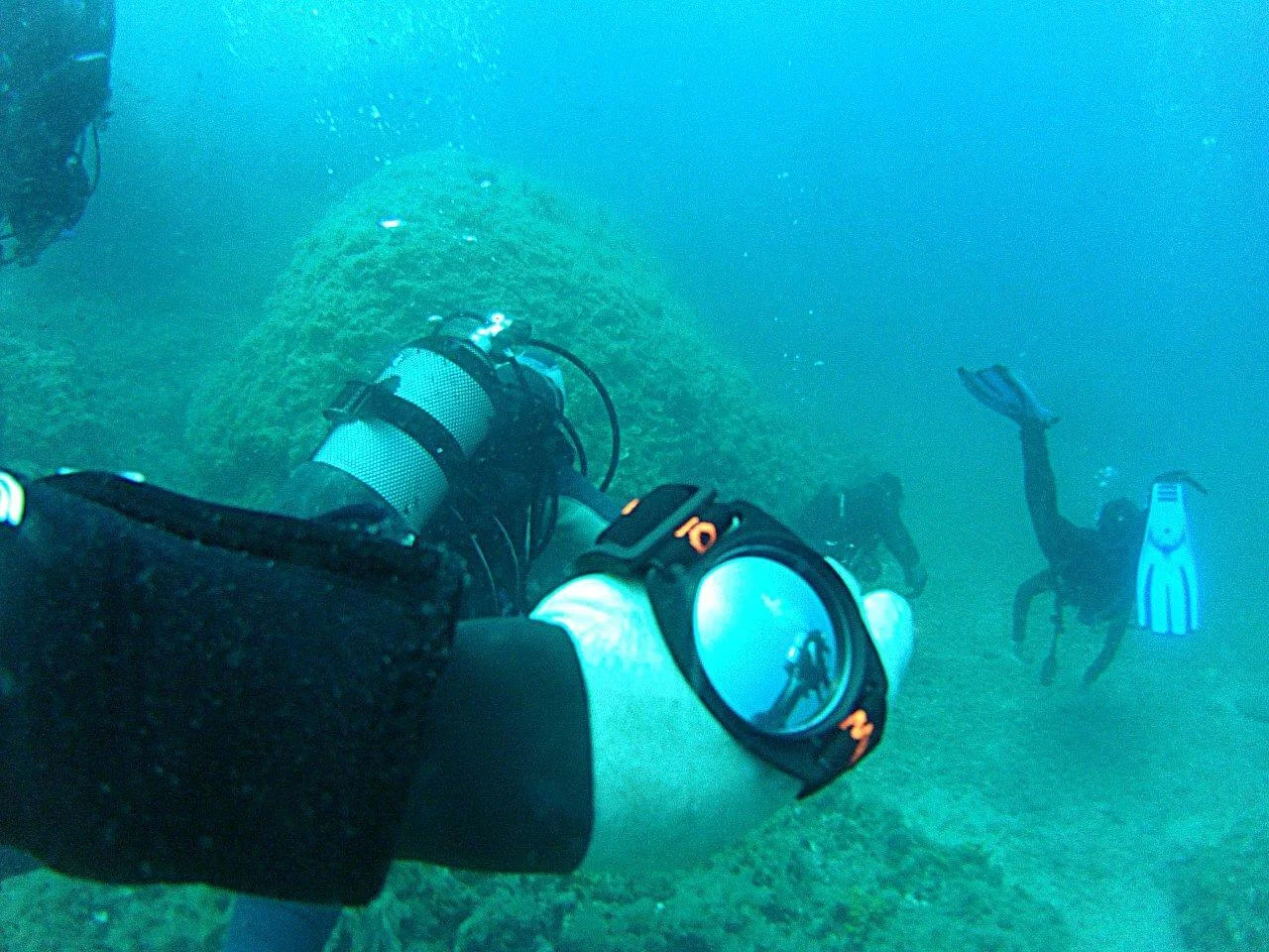 As a divemaster, often dive with a group, for which I am responsible. I pay attention to all the pairs of divers coming behind me. Due to the limited field of view (mask, cylinders) is a tedious task. In addition, divers are often fascinated by the underwater world stop, leave, do not keep the pattern.Sign keeping together is often ignored. It has long been thought of what to do to have eyesaround the head. Nature did not prepare us for associating with unruly partners. It was impossible to control the flow direction, at the same time to see what they do members of the group. Until…:-) On the solution I came up suddenly. Convex mirrors focus the image turned out to be an extremely good idea.
